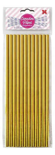 Canudo de Papel Metalizado Dourado C/12 Unid