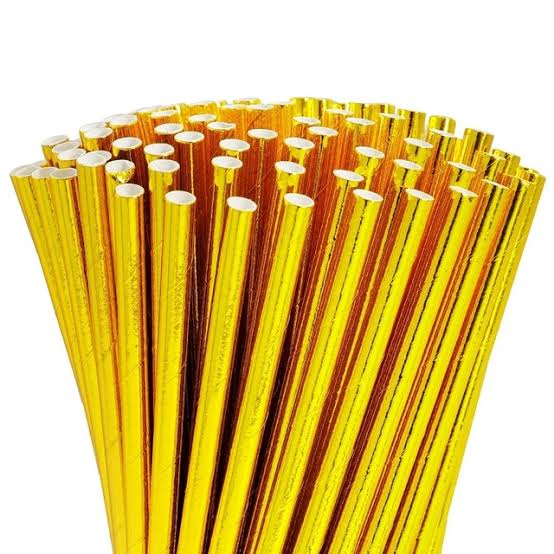 Canudo de Papel Metalizado Dourado com 12 Unidades
