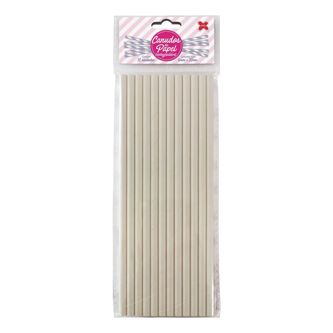 Canudo de Papel Liso Branco com 12 unidades