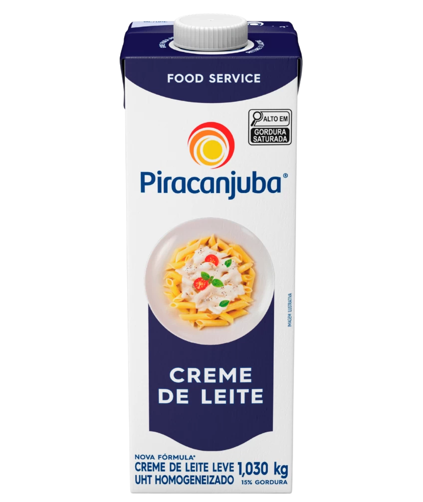 Creme de Leite O creme de leite gourmet Piracanjuba tem 17% de gordura de leite e é ideal para ser incorporado em pratos salgados, bem como numa grande variedade de doces, tortas, pavês, mousses e muito mais.