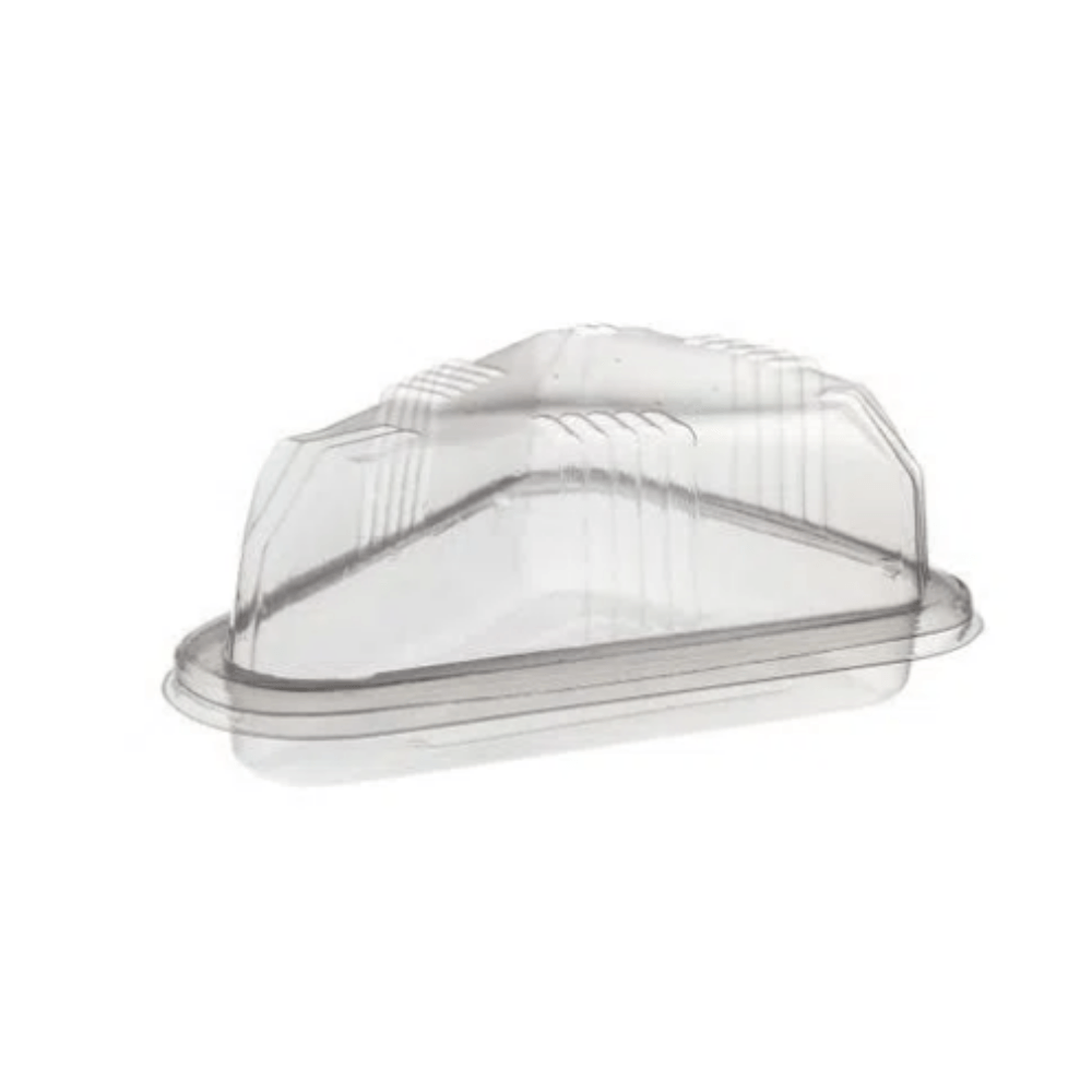 A embalagem Fatia G630 da Galvanotek foi projetada especificamente para acomodar e proteger fatias de bolos e tortas. Seu formato triangular, transparente e com tampa permite a exposição do produto de forma higiênica e atrativa, facilitando o transporte e a venda individual de sobremesas.